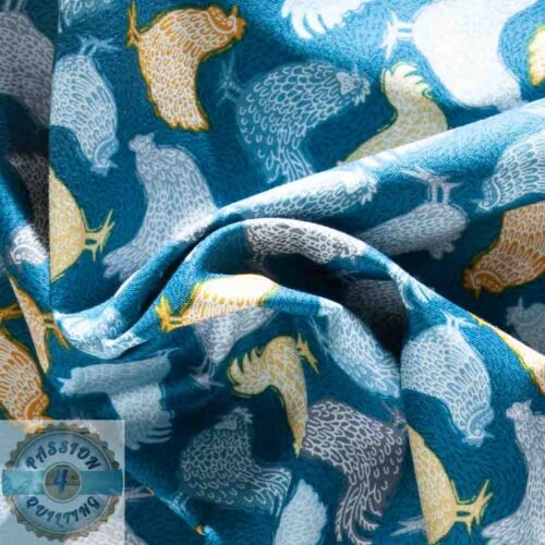 Featuring a delightful blue background adorned with small chickens in blue, white, yellow, and grey, this fabric is sure to bring a smile to your face. But it’s not just the charming design that makes the Grove Chickens 2160-B per 25cm a must-have for any sewing enthusiast.