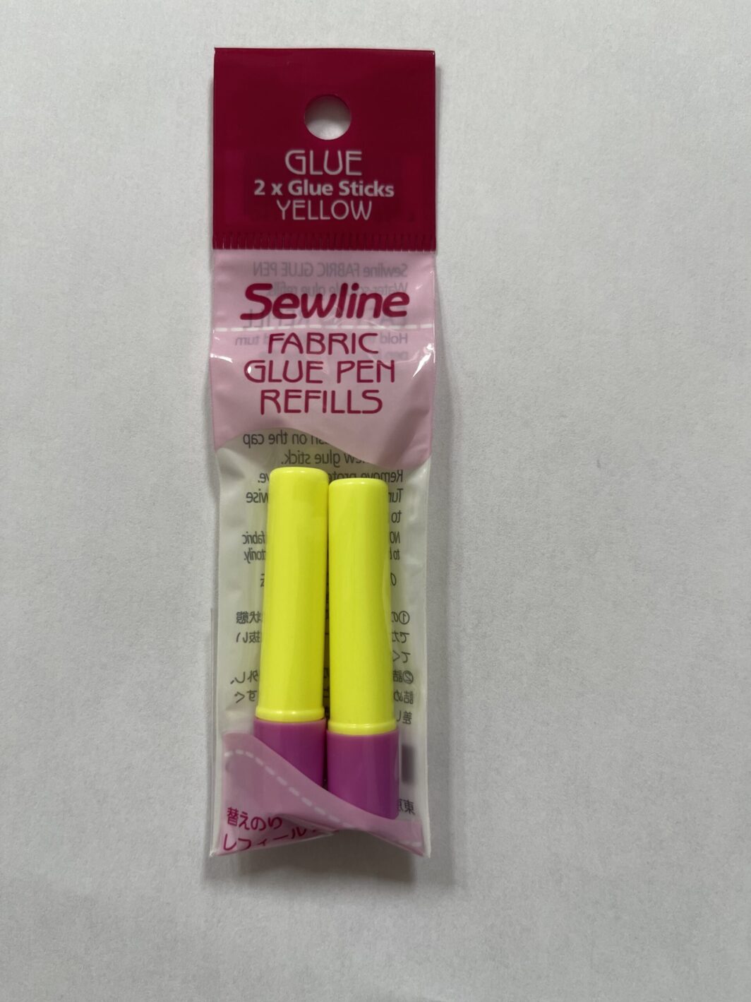 Sewline Fabric Glue pen refill yellow. Easy to use. Dries clear and water soluble. Ideal for English paper piecing. Two refills